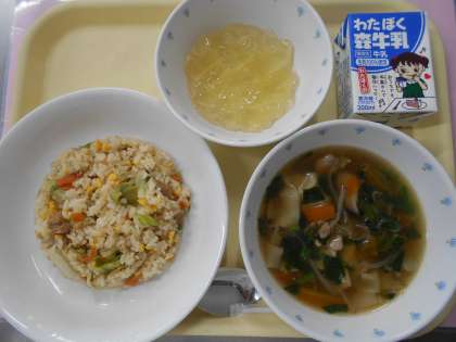 レタスは生野菜のサラダとして食べられている印象が強いと思いますが、最近ではスープや鍋物に使われることも増えてきました。今日の給食では「レタスチャーハン」として登場しました。レタスのシャキシャキ感を味わいながら、おいしくいただきました。