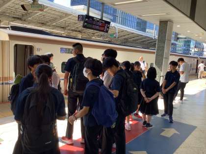 いよいよ新幹線に乗車します。ホームでは、これからの予定を話し合って確認しています。金沢に向かいます。
