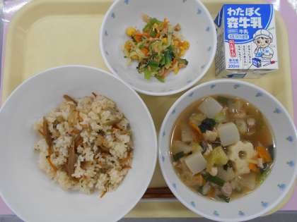 今日の主食と汁物は東京都郷土料理の「深川飯」と「ちゃんこ汁」でした。