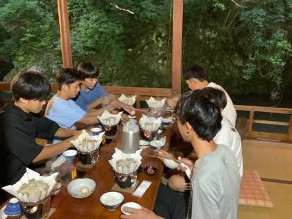 1日の疲れが、みんなの笑顔と会話で吹き飛んでますね!