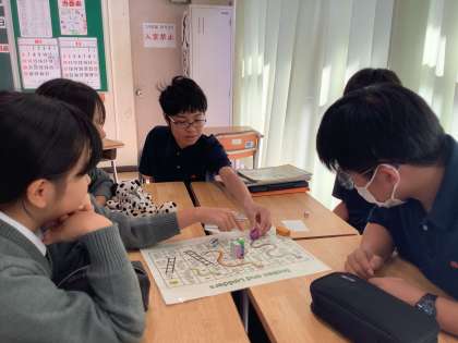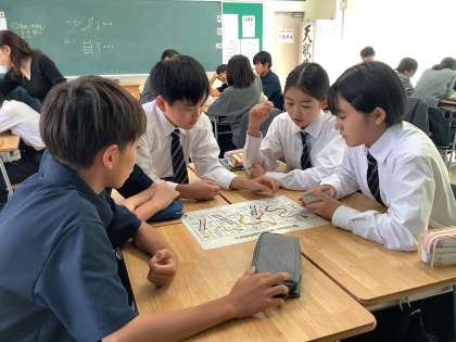 サイコロゲームで前期の学習の総復習をしています。