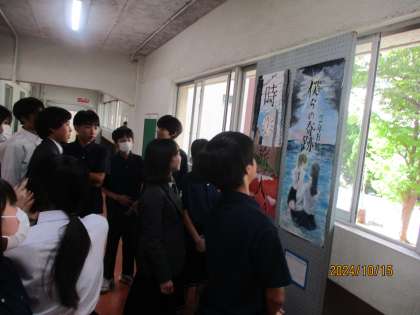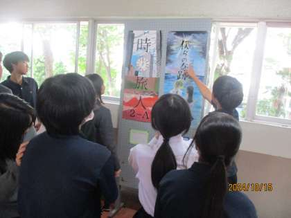 合唱コンクールのめくりプログラムが完成しました。各クラスの自由曲をテーマにした絵が表現されています。今日は全校生徒による投票が行われました。
