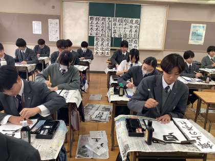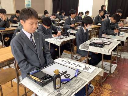 背筋をピンと伸ばし、よい姿勢で筆を握り、ほどよい緊張感をもって真剣に練習しています。