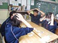 分詞の後置修飾について学習しています。ゲーム性のある活動で楽しく学んでいました。