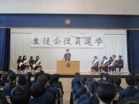 体育館で、生徒会役員選挙立会演説会が行われました。立候補者と推薦責任者から一...