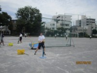 ソフトボールの授業です。チーム内ゲームで、アウトを取る練習をしています。今までの...