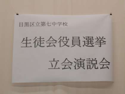 生徒会役員選挙の立会演説会及び投票が行われました。第七中学校の伝統を受け継ぐこと、新たな伝統を創造することを考え、決意する日であってほしいと思います。生徒会役員を中心によりよい第七中学校を創っていきましょう。