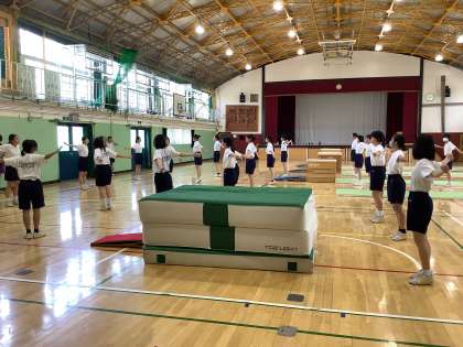 暑い1日にそうです。男子はプール、女子は体育館です。