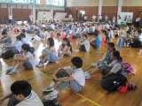 今年度初の試みとして、6年生と中学2年生が全体で交流をもちました。