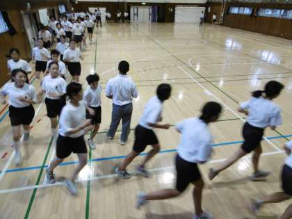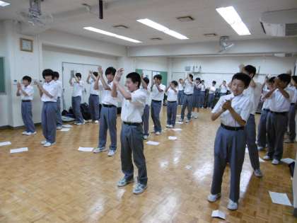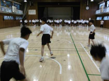 雨のため校庭が使えず、区連体の練習を体育館で行ってきました。