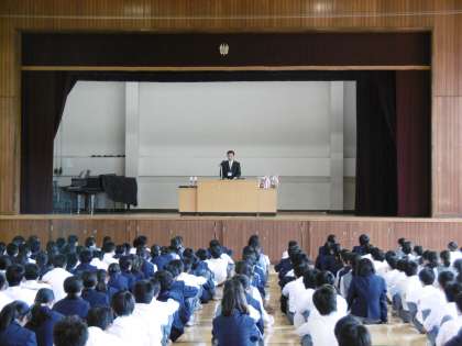校長からは、ノーベル賞を受賞した2人の日本人の話から前期のまとめと後期に向けての心構えについて話をしました。みんなよく聞いていました。