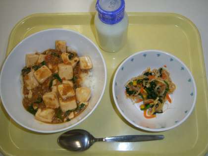 麻婆丼 五目ナムル 牛乳