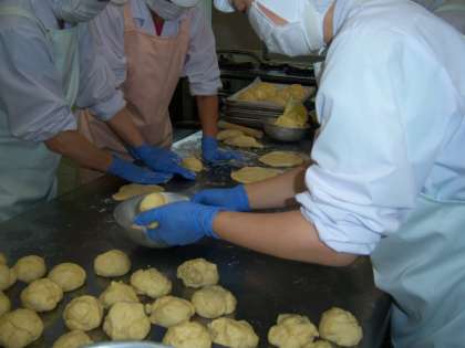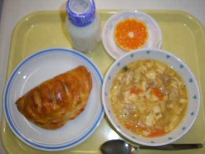 手作り丸ごとポテトパン 華風コーンスープ 菊花みかん 牛乳