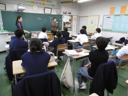 英語は電子黒板を使ったり、ペアワークをしたり、ALTを活用したり、コミュニケーション能力を高める工夫をしていました。