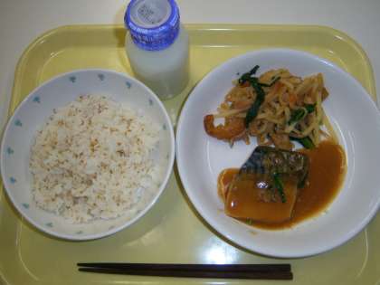 ごまご飯 鯖の味噌煮 じゃが芋の金平 牛乳