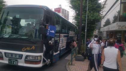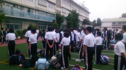 曇り空のもと、自然宿泊体験教室が始まりました。