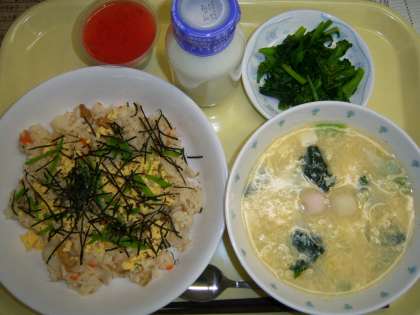 ちらし寿司 紅白はんぺん入りかき玉汁 菜の花の辛子あえ お雛様ゼリー 牛乳
