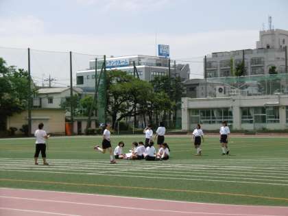 女子は短距離走のタイムをとりました。一生懸命走っていました。