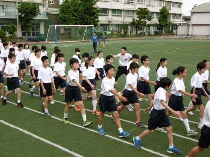 不安定な天気ですが、校庭では2年生が運動会の練習をしています。