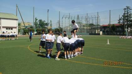 毎年1年生は「いかだ流し」を行い、学級の団結を深めます。
