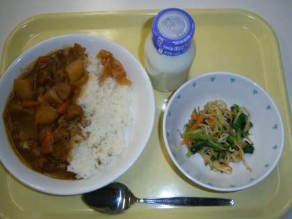 カレーライス 福神漬け 野菜のごま醤油 牛乳
