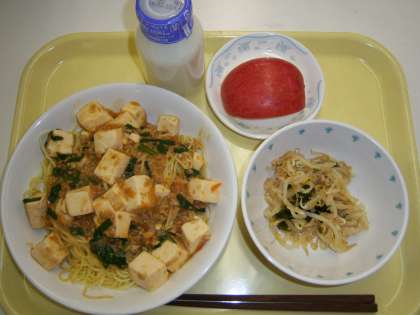 麻婆焼きそば もやしのごま醤油 りんご 牛乳