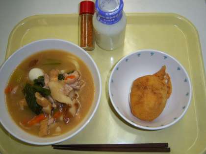 味噌煮込みうどん 揚げ芋(北海道中山峠) 牛乳