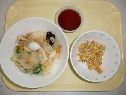 今日の給食では、もやしの甘酢和えに、食用の菊の花びらを使いました。