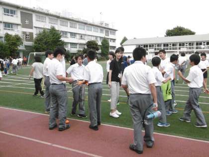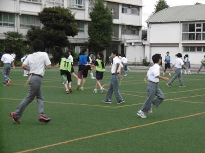 校庭いっぱいに広がり、汗びっしょりになって楽しみました。考査の疲れも吹っ飛びました。