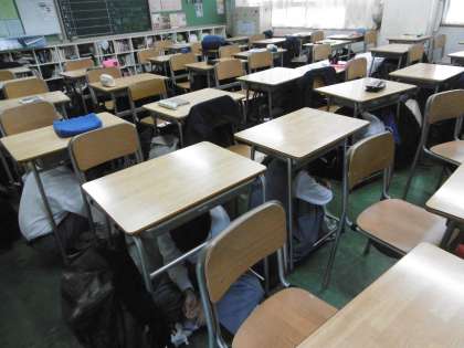 いつ起こるか分からない地震、訓練を繰り返して実施します。