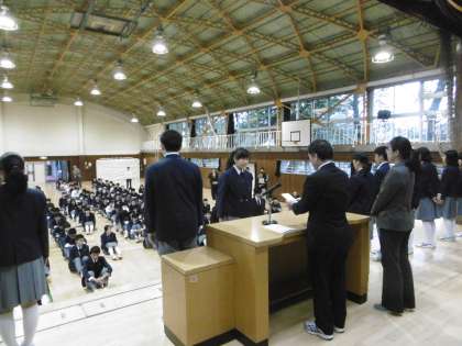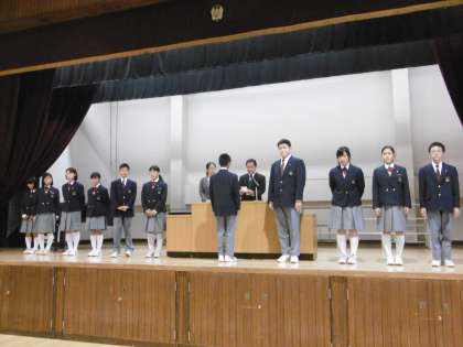 生徒会長、各専門委員会長に、代表で「任命証」を渡しました。