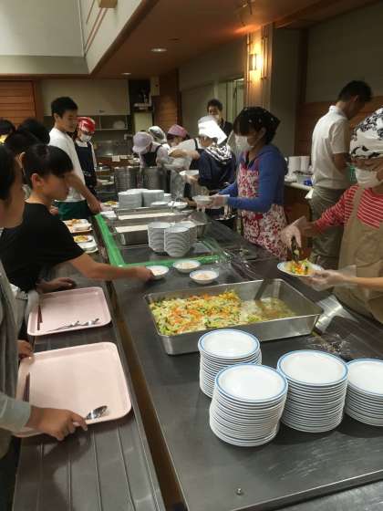 雨の影響もあり、30分ほど遅れて宿舎に到着しました。