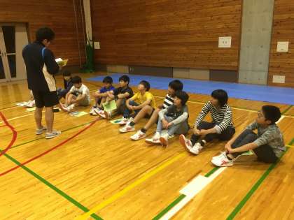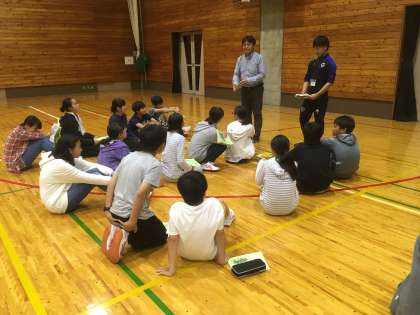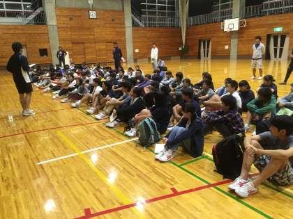 夕食後、体育館に集まり、1日の反省や明日の確認を行いました。