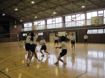 体育館では女子がバレーボールをやっていました。