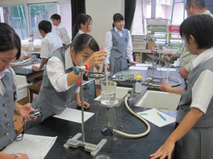 理科の授業は実験でした。こちらもグループ毎に協力し合いながら実験に取り組みました。