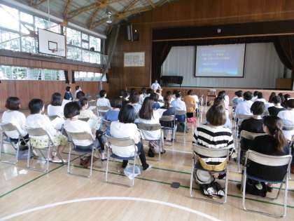 暑い中、またお忙しい中、たくさんの保護者の方にお集まりいただきました。