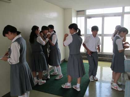 今年度から、歯みがきに参加した人数の多い1位と2位のクラスが表彰されることになり、例年よりも大勢の生徒が歯みがきをしています。