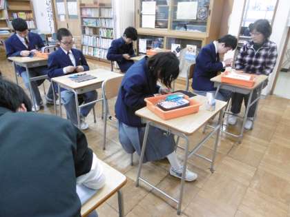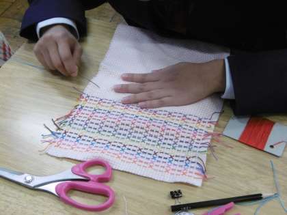 E組では家庭科の授業で「スウェーデン刺繍」に挑戦しました。
