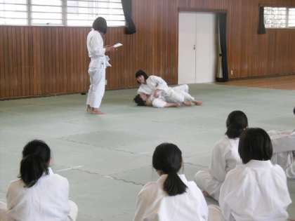 柔道のまとめの授業で「固め技」のテストをしていました。さすが3年生、柔道着がりりしく感じられました。