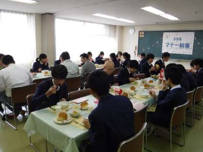 限られた時間の中でコース料理を食べるので、なかなか細やかな指導はできませんが、食器の使い方や食べ方など、ひとつひとつ確認しながら食べている生徒の様子が見られました。