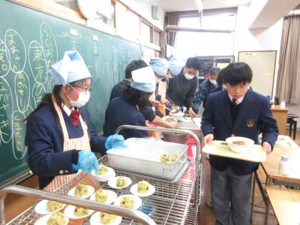 今年度最後の給食を、みんなで楽しく食べました。