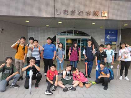 E組は、校外学習でしながわ水族館へ出発しました。雨が心配でしたが、電車とバスを乗り継いで、無事にしながわ水族館到着し館内を見学しています。