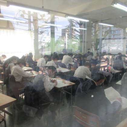 3年生は、2回目の復習確認テストで5教科のテストに臨んでいます。今月末に実施される、最終的な志望校を決める三者面談で、今回の復習確認テストの結果を参考にします。3年生は進路決定に向けてラストスパートです。