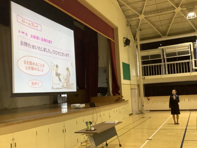講師は元CAの江上さん。ロールプレイも取り入れながら楽しく、分かりやすくお話してくださいました。