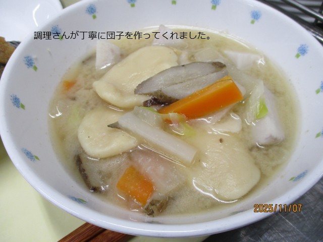 今日は小麦団子のはいった「だご汁」でした。
