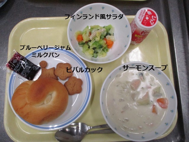 サンタクロースの国「フィンランド」の料理を給食風にしました。