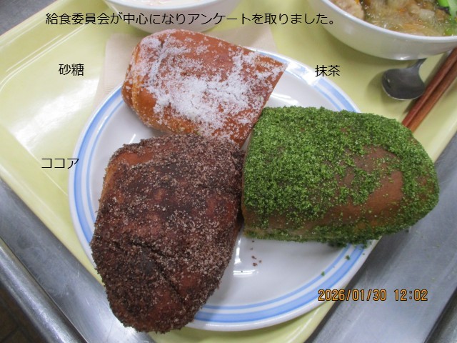 今回は①砂糖②抹茶③ココアの3種でしたが、一番人気は砂糖でした。
