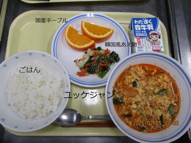 今日は「韓国 ユッケジャン」です。子どもたちは韓国料理が