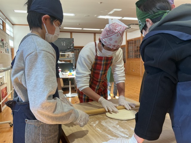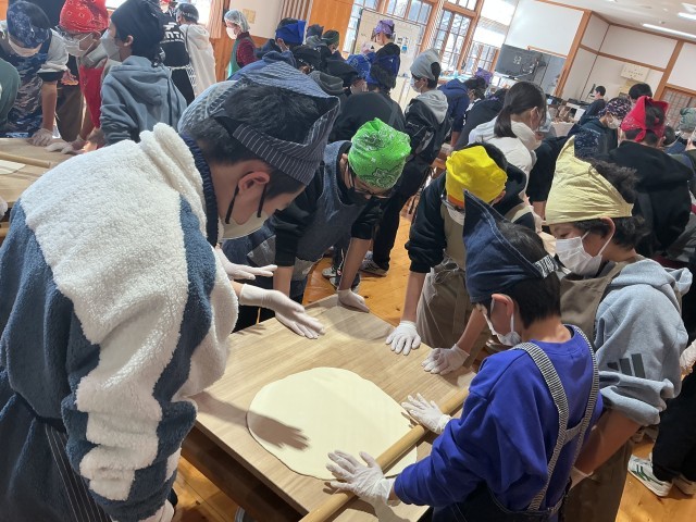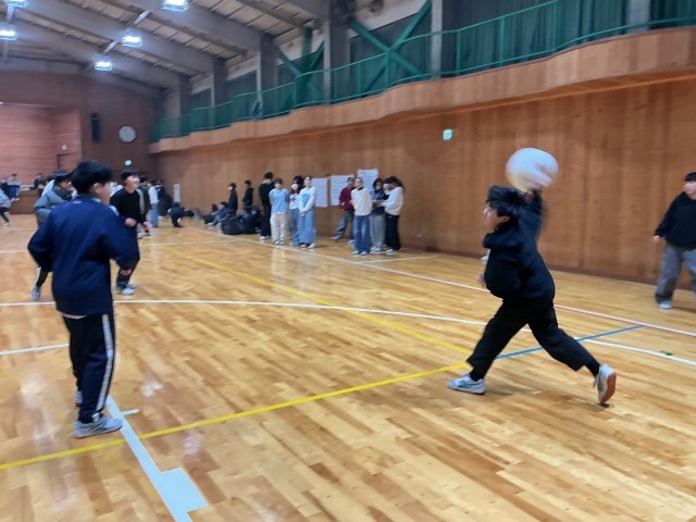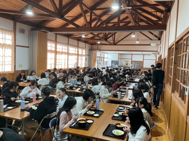 初日。お昼にほうとう作りに挑戦しました。 宿舎に着いてから、ドッジボール大会!