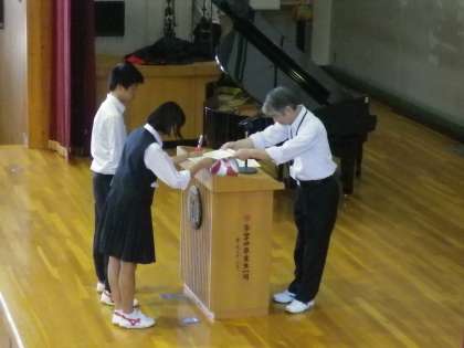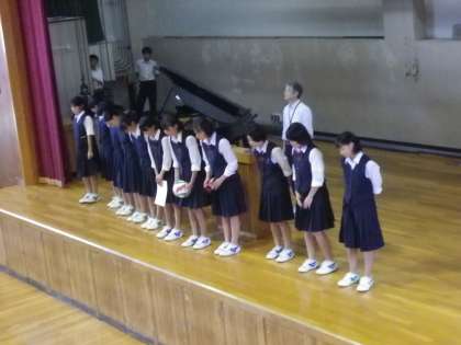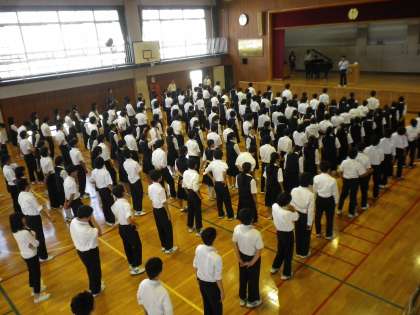 校長先生から、「4月から少しでも成長した所を自分の自信につなげること。後期が始まる来週には後期の目標をたて、新たな気持ちで臨むように。」とお話がありました。